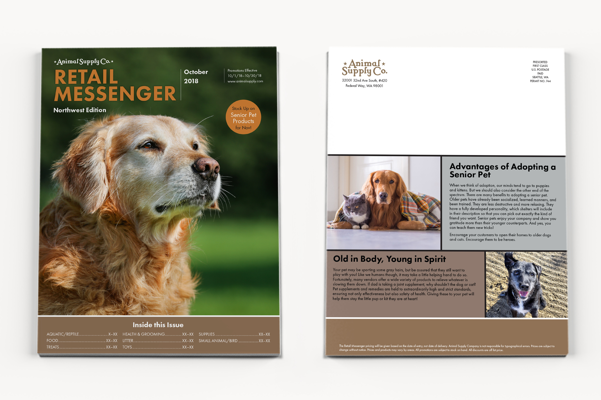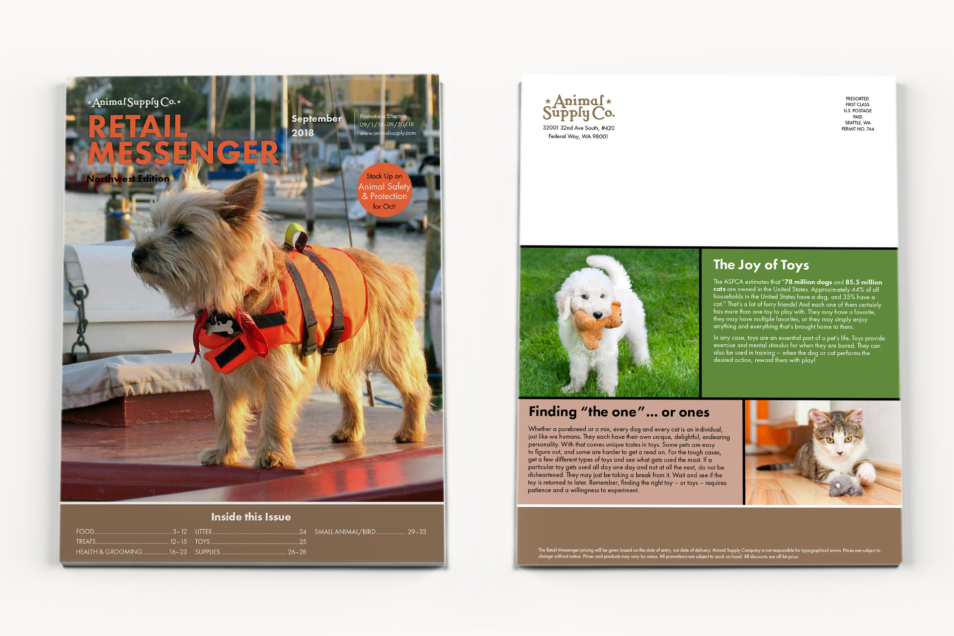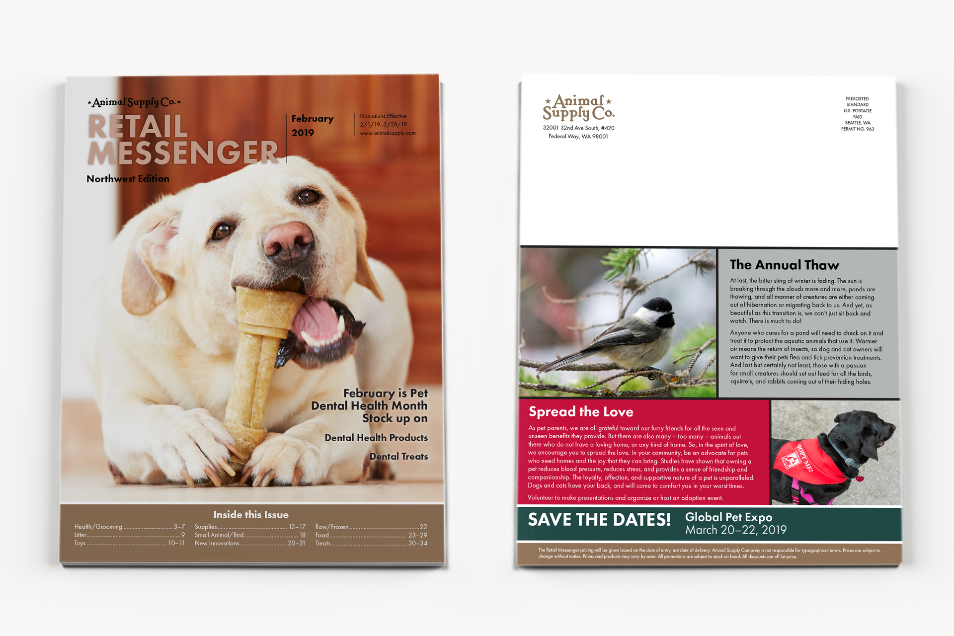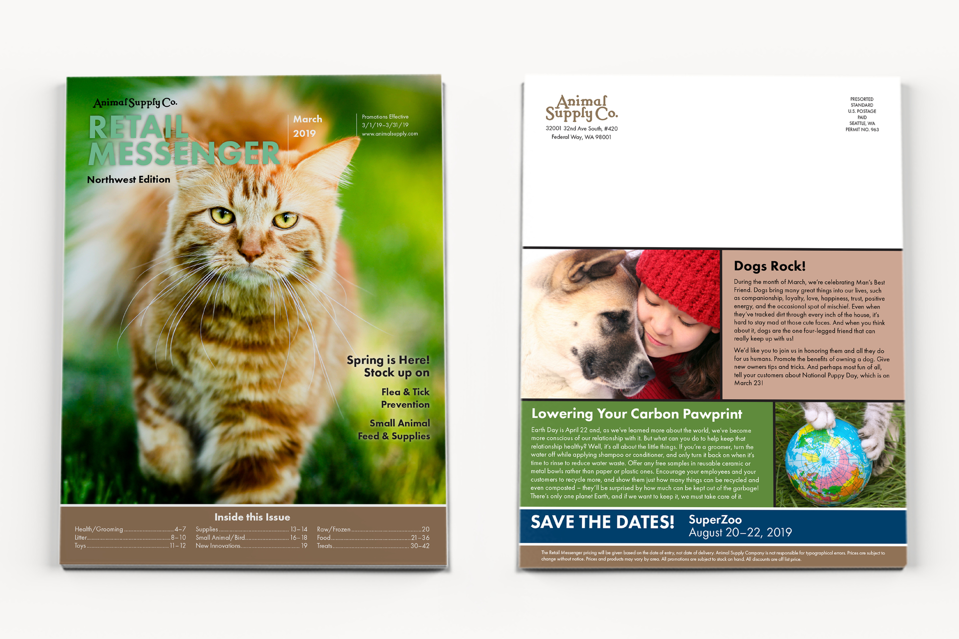 Animal Supply Co. is a national distributor of pet products, so their monthly magazine, Retail Messenger, has to appeal to pet retailers both big and small.