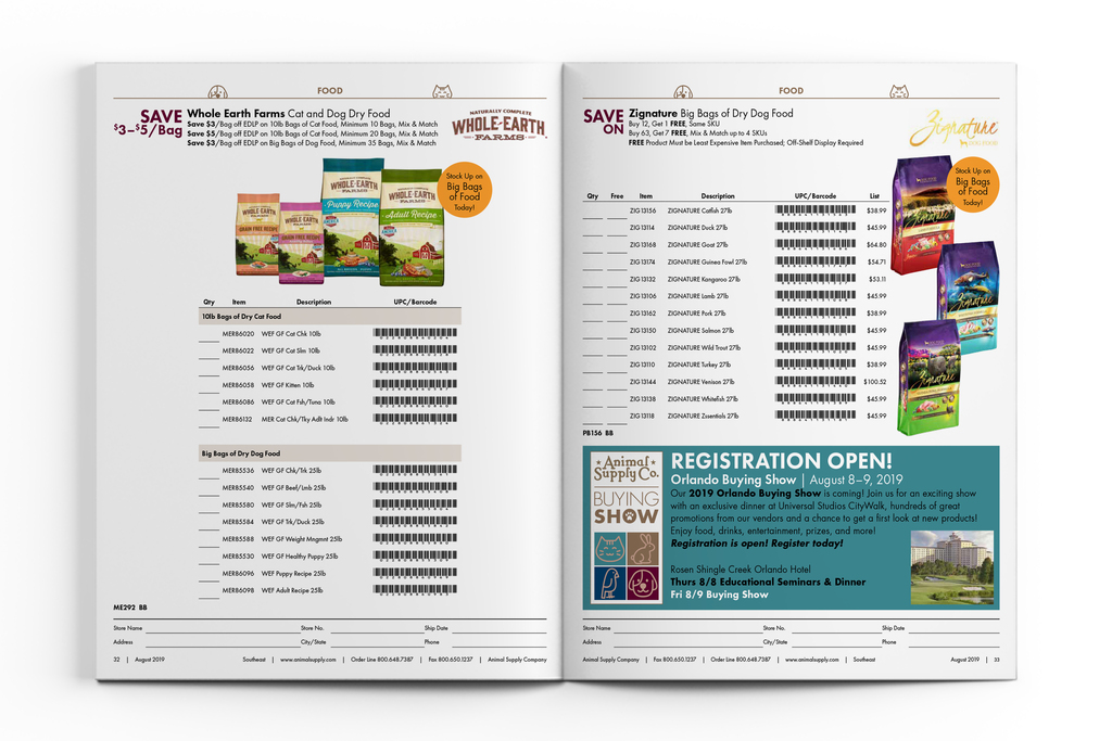 An Animal Supply Co. Buying Show is, in essence, a trade show hosted by ASC. Vendors set up booths to promote their products and offer special limited time deals, educational seminars are given on what's happening in the pet industry, and a dinner is held for social and networking opportunities. Retailers are cordially invited to sign up for and attend the event. Here in the Retail Messenger August 2019 Southeast Edition is an ad informing the retailers of the area about the details and encouraging them to register.