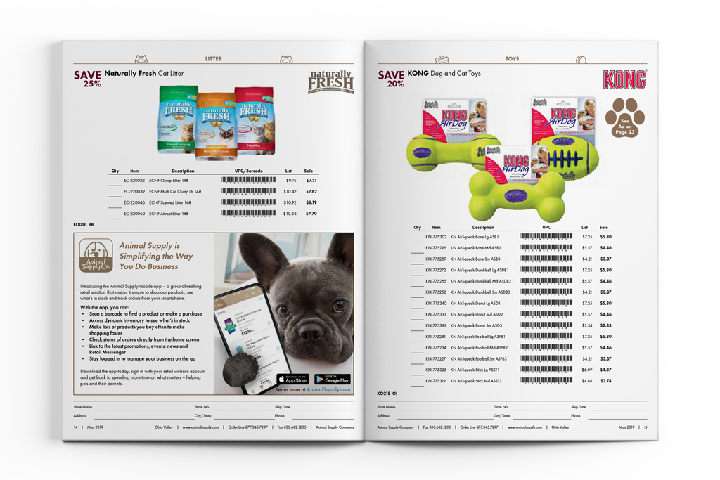 We all know the saying "there's an app for that," and Animal Supply Co. decided to act on that and make their own app alongside the new website for retailers to use. I created this ad, used here in the April 2019 Ohio Valley Edition (and others) of the Retail Messenger, to showcase the app's features in a way that's fun, clear, and easy to understand.