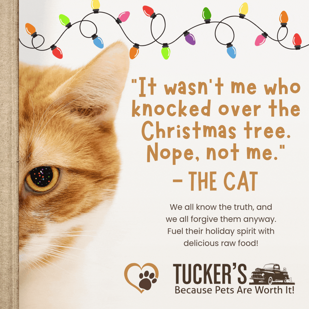 A classic tale many are all too familiar with, I took the cat's perspective, proclaiming innocence when the truth is reflected in that dilated pupil. But they still deserve delicious Tucker's raw food.